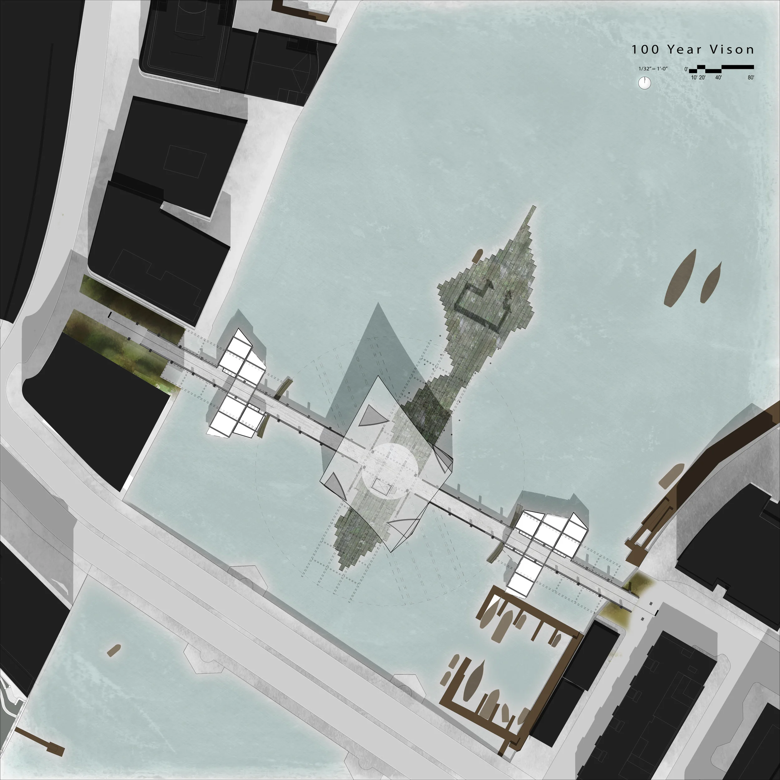 A bigger question remains of why there is value? The city recognizes its value evident by the fact that it still hasn’t been torn down. It comes down to character. It is the years that the bridge has collected where it has weathered into a coated rusted surface ultimately becoming a relic of the past. It’s the idea of the embodied time of the bridge and the potential of giving it back to city. This thesis is organized into three acts that span 100 years and shows the development of a bridge and a form.